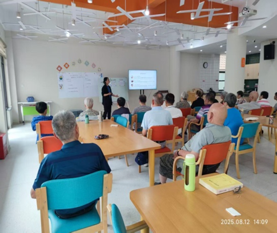 为丰富老年人的精神文化生活,提升她们的健康管理意识,2025年8月,上海嘉定区和谐家庭服务中心项目组在南翔镇银翔路老年人日间照护中心开展了一系列精彩活动,让老人们乐享幸福时光。