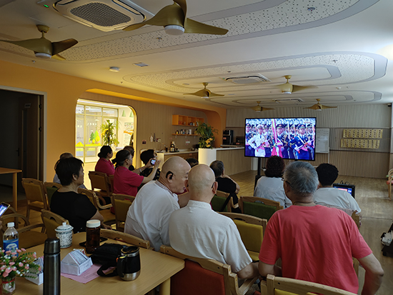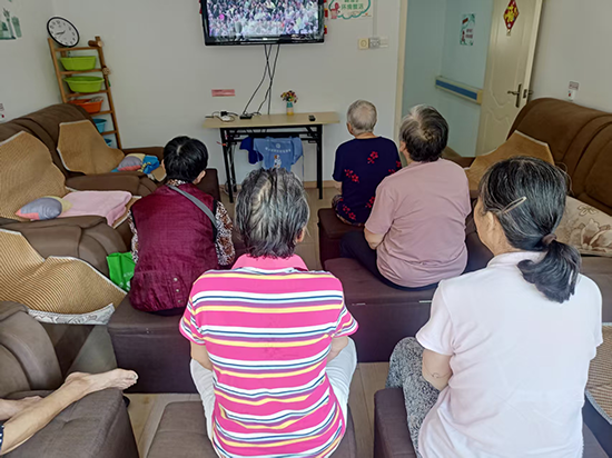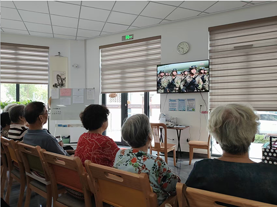 2025年9月3日上午,中国人民抗日战争暨世界反法西斯战争胜利80周年纪念大会隆重举行,上海嘉定区和谐家庭服务中心组织所运营的8所老年人日间照护中心共150余位老人观看阅兵仪式直播,共同见证这一庄严而激动人心的历史时刻 。